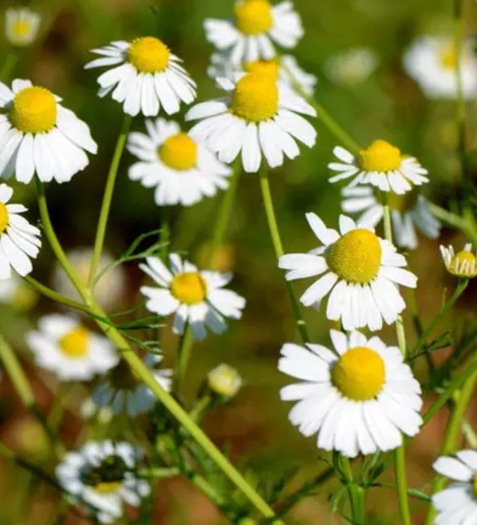 A camomila romana é conhecida por suas propriedades calmantes e relaxantes, eficazes no alívio da ansiedade, stress, insônia e irritabilidade.